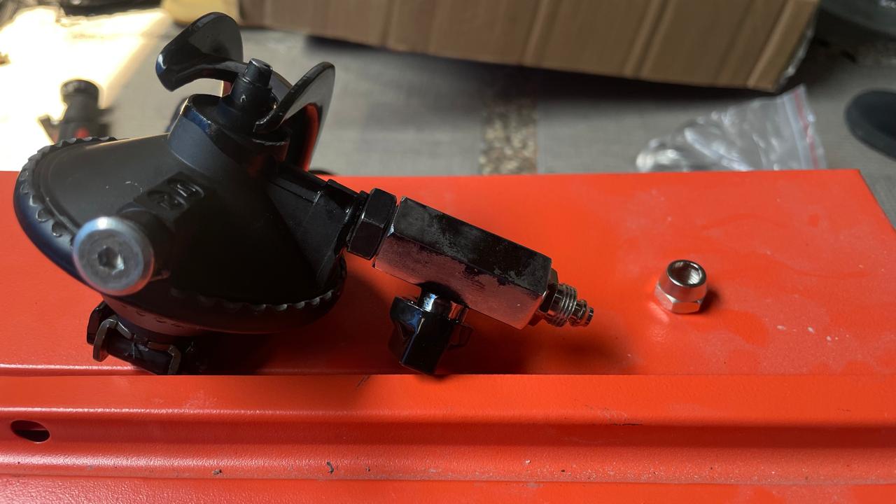 Pasang terlebih dahulu “Filter gas tekanan tinggi (high pressure filter)” pada “Reducer / regulator Tomasetto AT09” menggunakan “Neple Conversion Connector 1/4 – 1/8” sehingga menjadi seperti ini
