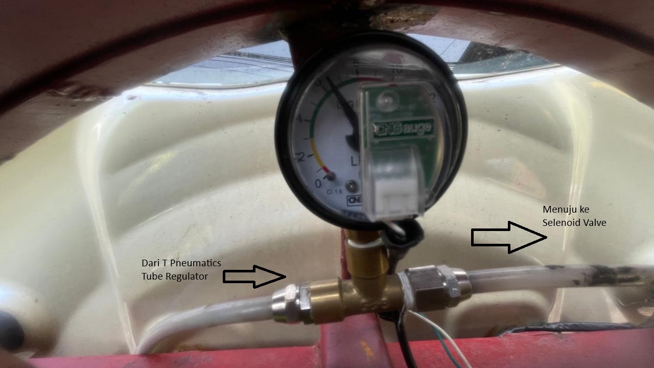Terhubung dengan “T Pneumatics tube 8mm” yang terbagi ke 2 regulator